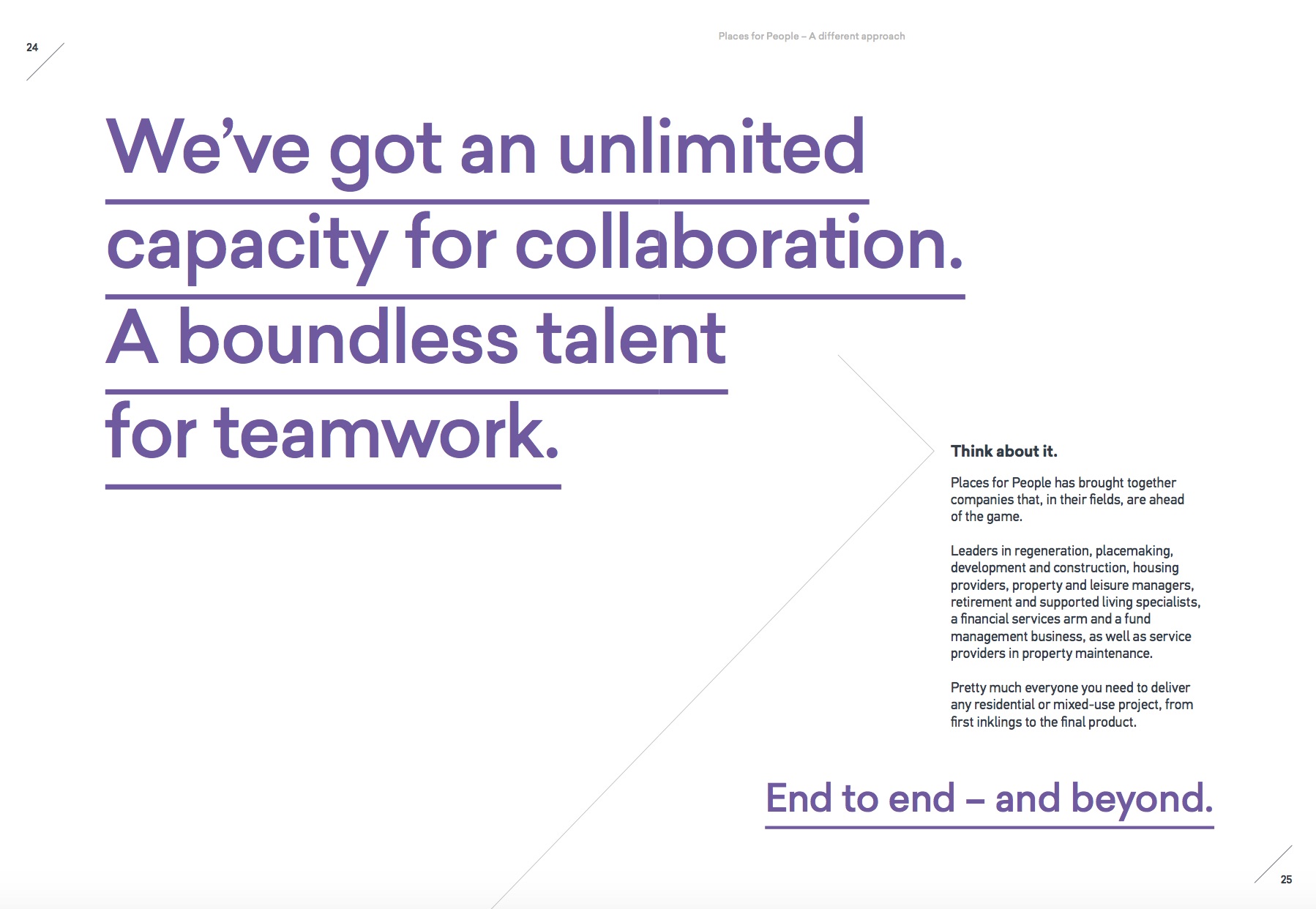 A brand book for an award-winning placemaking and regeneration group, capturing the diversity across its many business units, and its unifying spirit.