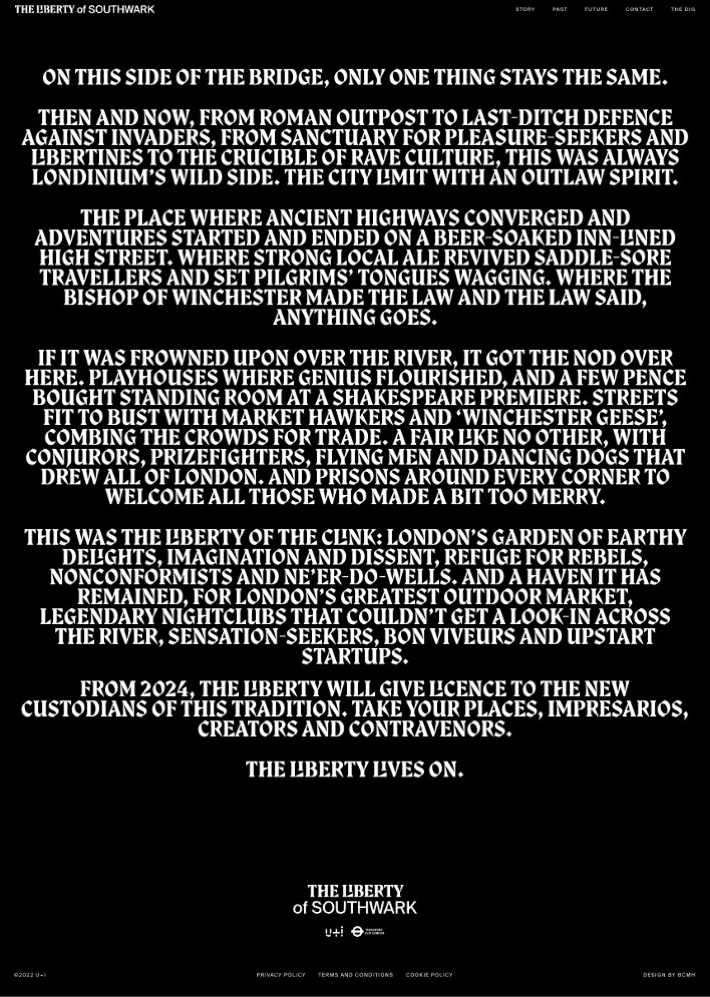 Brand story and tone of voice for U&I’s Liberty of Southwark development, drawing on the rebellious past of the south side of London Bridge.